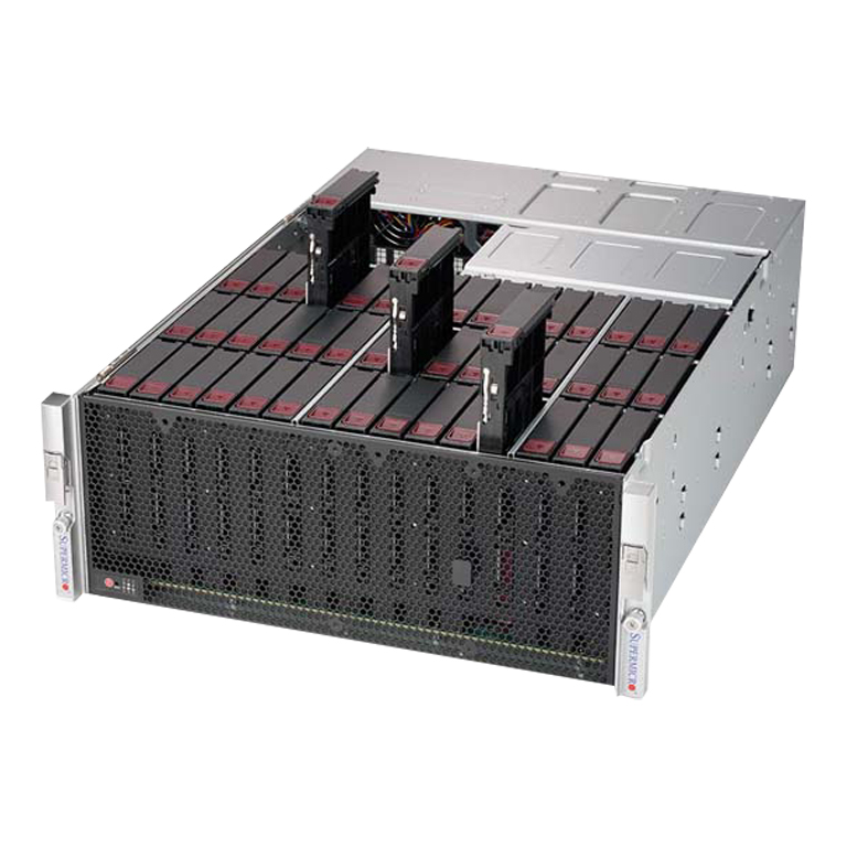 - 45 Hot-swap 3.5″ SAS3/SATA3 drive bays, 2 rear Hot-swap 2.5″ SATA drive bays; optional 2 SATA or NVMe